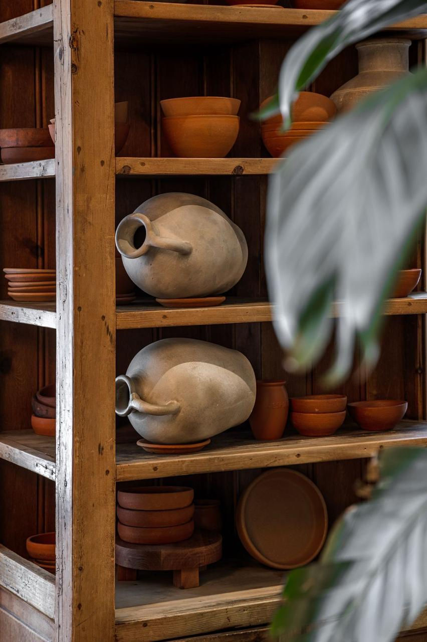 Georgian Restaurant in the bustling New York City, with exposed brick reminiscent of old school New York designs. The authenticity of Georgian culture is maintained by elements of traditional winemaking, earthen tones, Petre Otskheli paintings, and the Georgian alphabet.
